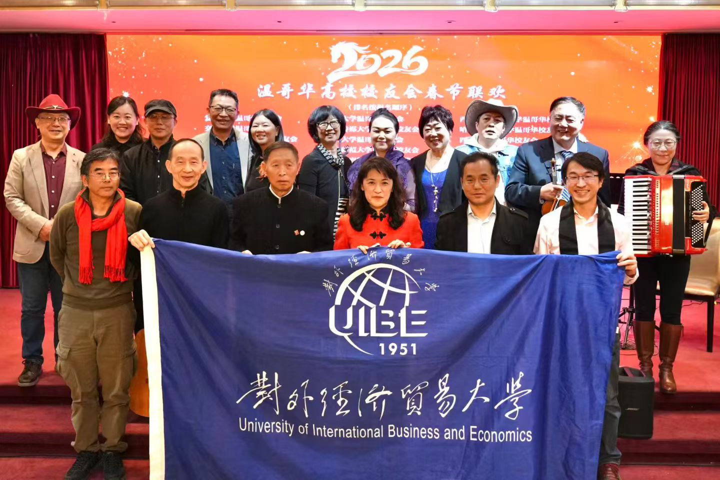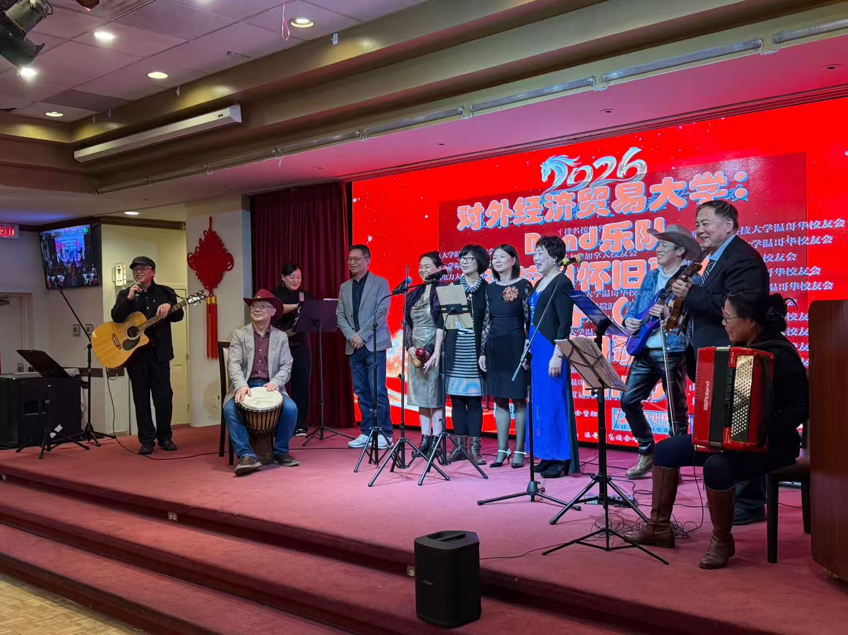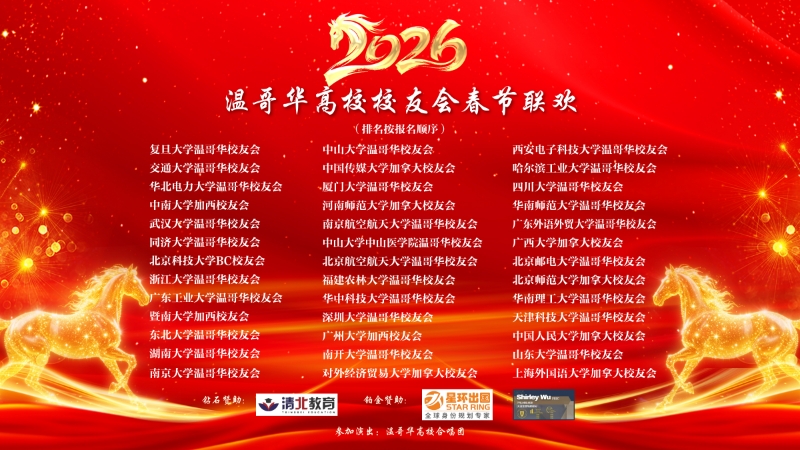 在3月15号刚刚结束的2026大温高校校友会春节联欢晚会上,经贸大校友团代表经贸大加拿大校友会参加了演出和庆祝,各位校友的热情参与,充分展现了贸大人积极向上的精神面貌。